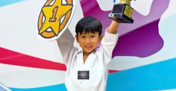 厲害!TVB視後二兒子跆拳道比賽奪冠,父子曬現場合照太溫馨