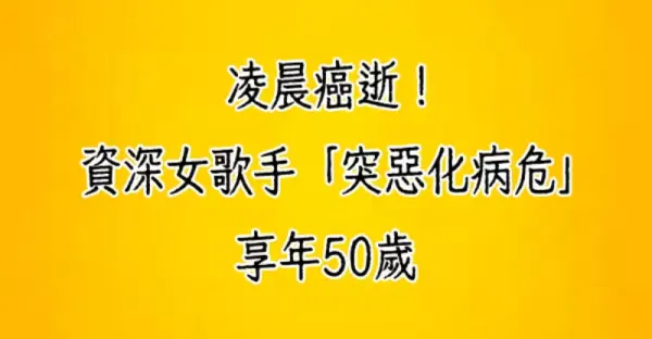 凌晨癌逝!資深女歌手「突惡化病危」享年50歲