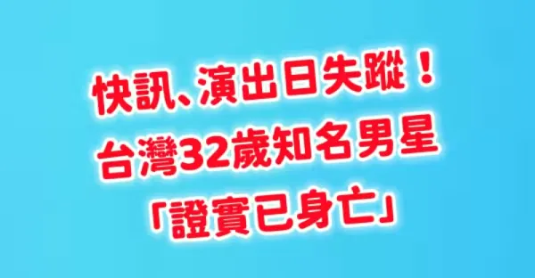 快訊/演出日失蹤 本土喜劇32歲知名男星「證實已身亡」