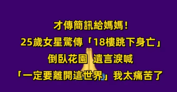 才傳簡訊給媽媽!25歲女星驚傳「18樓跳下身亡」倒臥花園 遺言淚喊「一定要離開這世界」我太痛苦了...