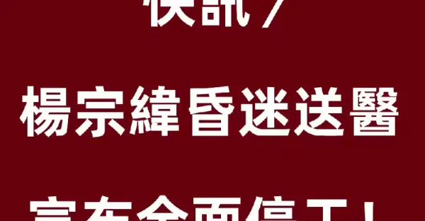 快訊/楊宗緯昏迷送醫 宣布全面停工!