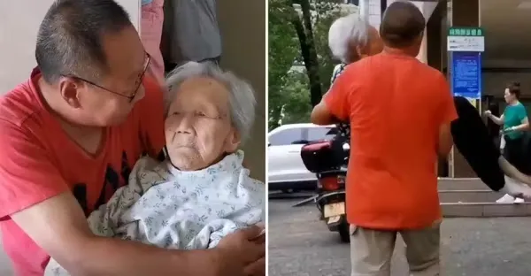 52歲兒子全程「抱著101歲媽媽」去看病!候診時「聽媽媽一句話」他當場淚崩:「這是兒子的本分」
