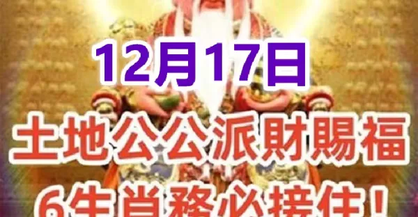 12月17日:土地公公派財賜福,6生肖務必接住!接了就有頭獎中!