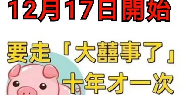 六大生肖: 12月17日開始 要走「 大大囍事了 」 十年才一次