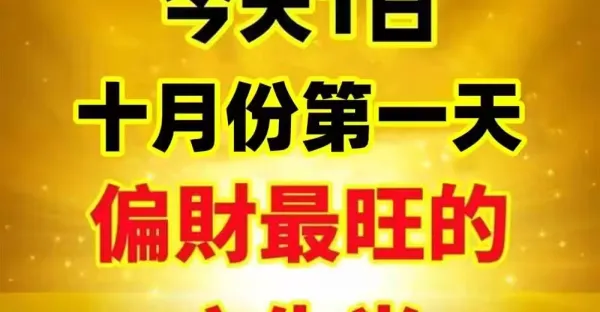 今天1日(十月份第一天)偏財最旺的六生肖!