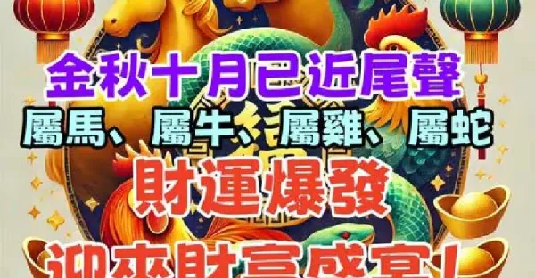 金秋十月已近尾聲,屬馬、屬牛、屬雞、屬蛇財運爆發,迎來財富盛宴!