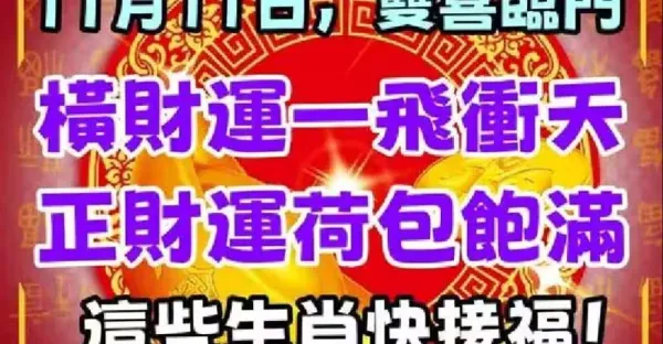 11月11日,雙喜臨門,橫財運一飛沖天,正財運荷包飽滿,快接福!