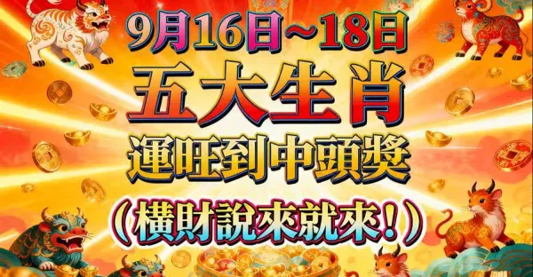 9月16日馬上發橫財,六大生肖開心數鈔票~