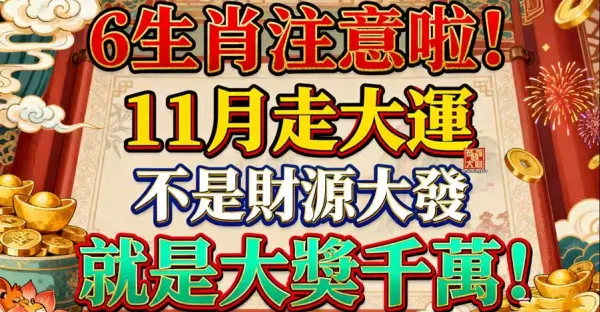 「 明天 11月6號 」 三生肖 橫財最旺!