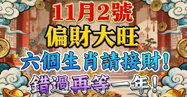 11月2號 偏財大旺,六個生肖請接財!錯過再等一年~