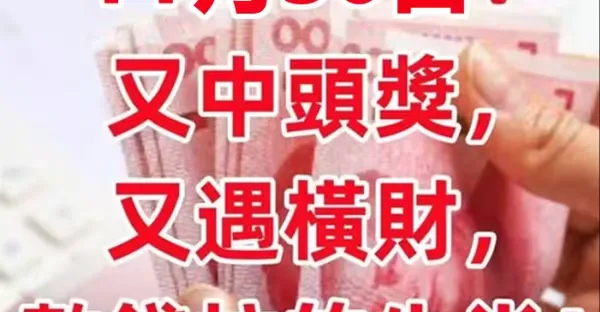 11月30日(11月最後一天)又中頭獎 ,又遇橫財,數錢忙的生肖~