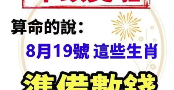8月19日一筆橫財入命,6個生肖財運當頭,徹底翻身!!