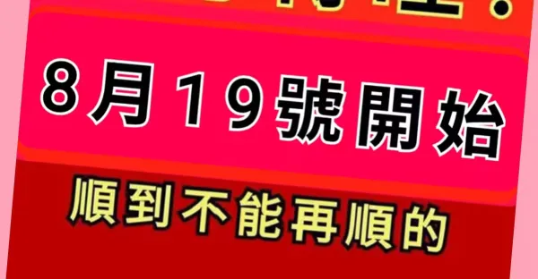 運勢轉旺! 8月19號 開始 3個生肖 「 一路大順 」
