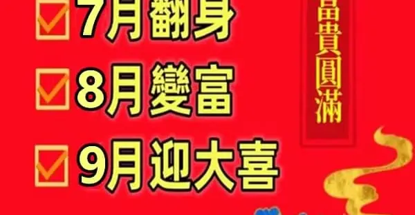 恭喜三大生肖,7月翻身,8月變富,9月迎大喜,富貴圓滿