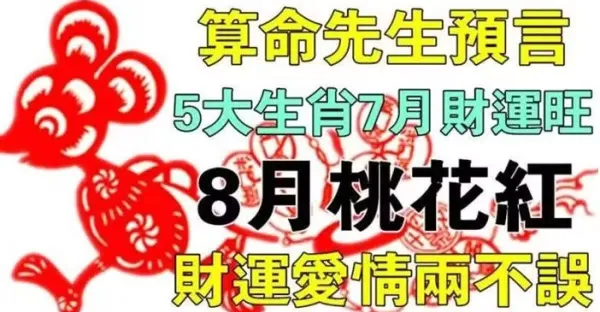 五大生肖:7月份財運旺,8月桃花紅,財運愛情兩不誤