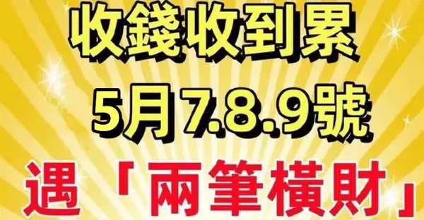 收錢收到累!5月7.8.9號遇「兩筆橫財降臨」日子一順百順的生肖!