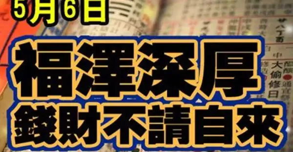 5月6日福澤深厚,錢財不請自來的生肖