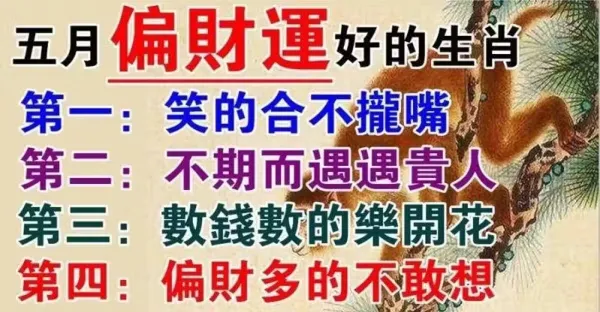 五月偏財運好的生肖:數錢數的樂開花,偏財多的不敢想