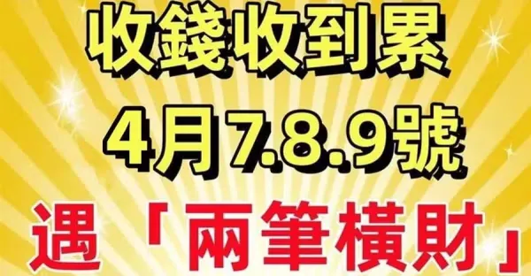 收錢收到累!4月7.8.9號,遇「兩筆橫財」日子一順百順的生肖!