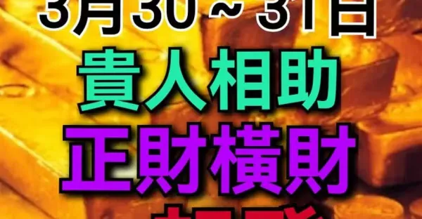 3月30~31日 四生肖 貴人相助 正財橫財 一起發