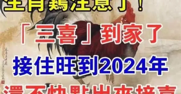 生肖雞!2024年有三大喜事!屬雞人將被大喜纏身!家裡有屬相雞的快來接喜!接住正財橫財一起來!