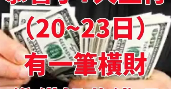 恭喜了7大生肖,在未來三天(20~23日)即將有一筆橫財!準備好袋子收錢吧!