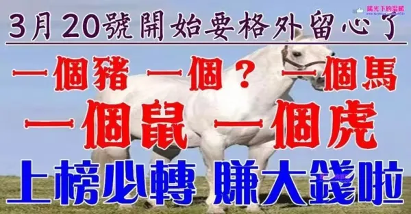 3月20號開始要格外留心了發財日,一個豬,一個?一個馬,一個鼠,一個虎必轉