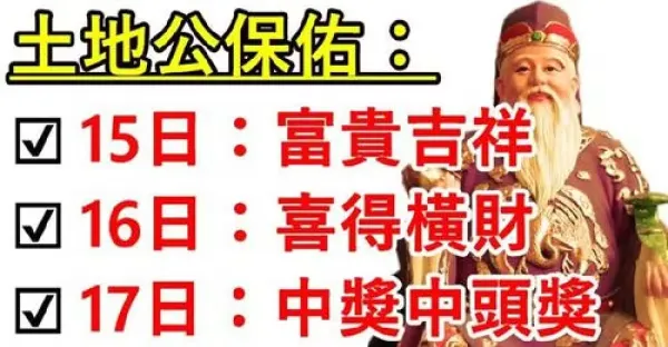 土地公保佑八大生肖:3月15日富貴吉祥,16日喜得橫財,17日中獎中頭獎有你嘛