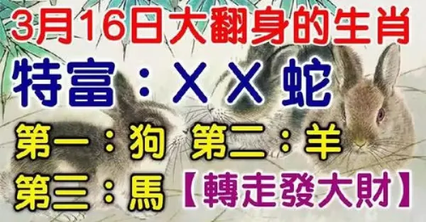 3月16日必然轉運大翻身的生肖,轉走發大財有你嘛