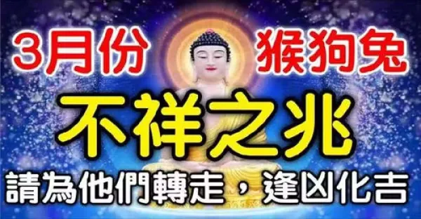生肖(猴狗兔)3月份有不祥之兆,請為他們轉走,逢凶化吉