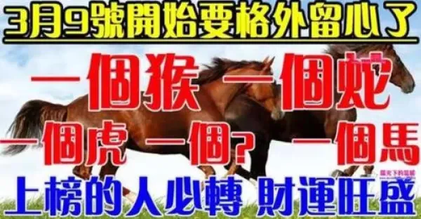3月9號開始要格外留意了,一個猴,一個蛇,一個虎,一個?一個馬必轉