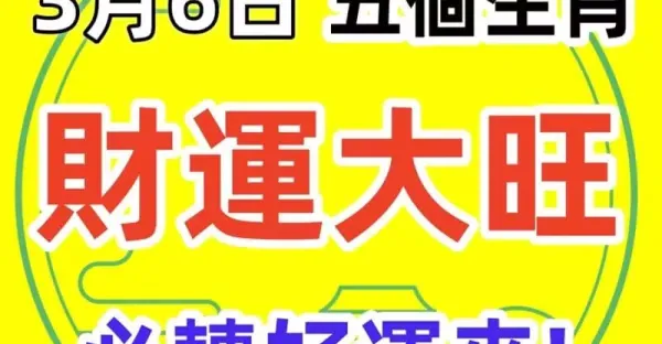 3月7日後大轉運,悄悄變成有錢人,一路旺到底的生肖