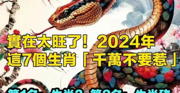 實在太旺了!2024年這7個生肖「千萬不要招惹」 他們「前有貴人的相助」後有財神招財 第1名:生肖? 第2名:生肖豬 第3名:生肖? 第4名:生肖蛇