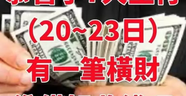 恭喜了7大生肖,在未來三天(20到23日)即將有一筆橫財!準備好收錢吧!
