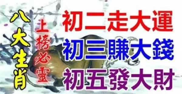 八大生肖好運來:初二走大運,初三賺大錢,初五發大財