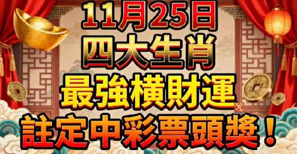 11月25日,四大生肖最強橫財運,註定中彩票頭獎