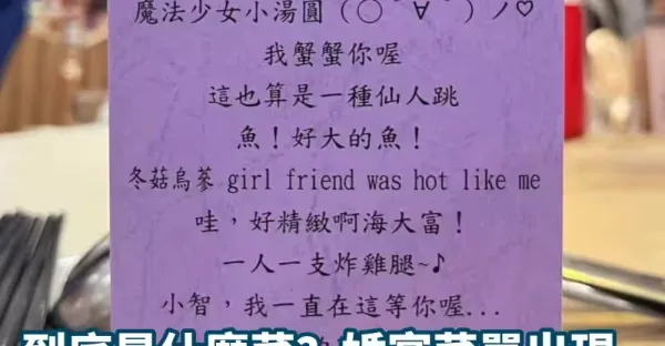 到底是什麼菜?婚宴菜單出現「小智我一直在等你」 賓客超困惑「一端上桌大家都笑了」!