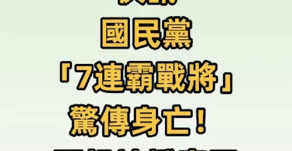 快訊/國民黨「7連霸戰將」凌晨驚傳身亡!享年七十三歲