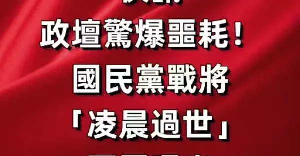 政壇驚爆噩耗!國民黨戰將 「凌晨過世」 死因曝光 生前遺願「支持兒子選立委」