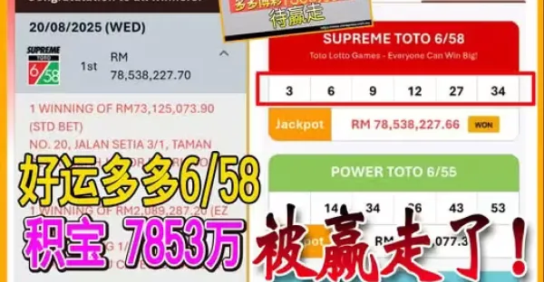 好運多多6/58 積寶 7853萬 被贏走了! 幸運兒是你嗎?