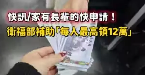 快訊/家有長輩的快申請!衛福部補助「每人最高領12萬」!