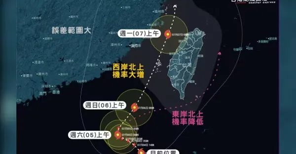 天氣/准丹娜絲明大迴轉加速!!粉專:風雨率先衝擊2地 停班課機率曝