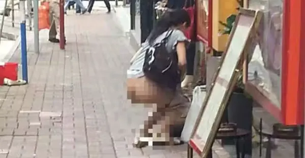 馬尾妹當街脫褲大便!渾圓屁股任人看 拉完閃人留一地黃金超沒水準