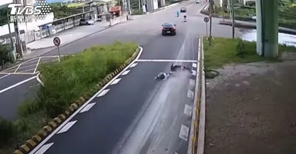 砂石車泥漿染路面!三義火炎山「2騎士慘摔」監視器全錄下