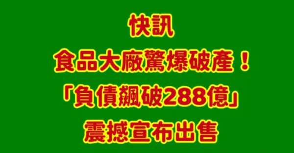 快訊/食品大廠驚爆破產!「負債飆破288億」震撼宣布低價出售