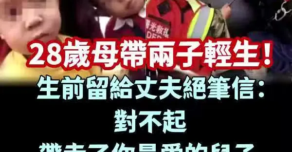 28歲母帶兩子輕.生! 生前留給丈夫絕筆信:「對不起,帶走了你最愛的兒子…」 「遺書道盡婆媳心酸」 連尪也不挺