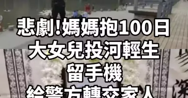 悲劇!媽媽抱100日大女兒投河輕生 留手機給警方轉交家人 揭長期受丈夫動武萬念俱灰!