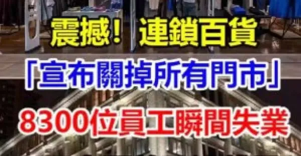 震撼!!連鎖百貨「宣布關掉所有門市」8300位員工瞬間失業「6月中開啟下波裁員」