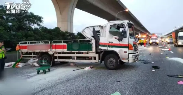 國1北上中壢服務區3車追撞 大貨車「失控滾圈」側翻3人傷