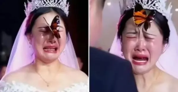 婚禮上,「一隻胡蝶死守新娘」遲遲不走「新娘愣3秒」當場淚崩顫喊:今天他的真來了!